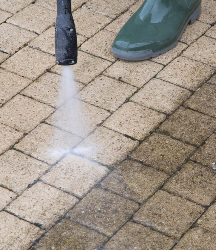 Our high-powered pressure washer heats water up to 100° and we then steam clean surfaces to restore their look without the damage sometimes caused by high pressure cold water cleaning. Steam cleaning has a number of other advantages over cold water pressure cleaning, it not only gives a deeper clean and removes more dirt, but it helps kill living organisms in the bacteria which is often one of the main causes for the build up of dirt and discolouration. On areas such as blocked driveways, patios and pathways we clean the area and also offer a re-sanding and sealing service. Stone or brick can also be cleaned.